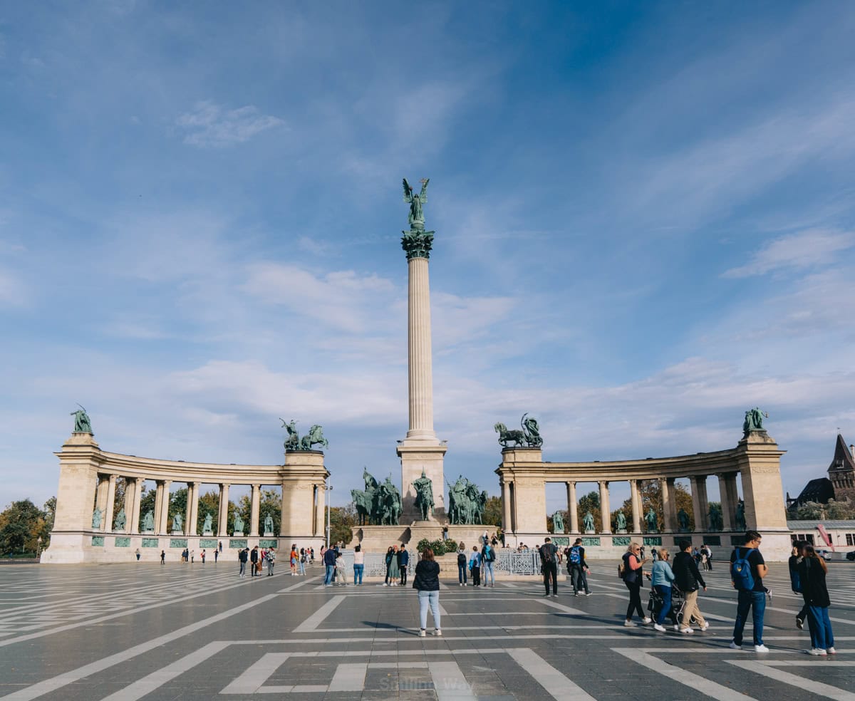 Kousek od baziliky svatého Štěpána nasedněte na historickou tramvaj M1 a svezte se k náměstí Hrdinů (Hősök tere). Jeho dominantou je památník Tisíciletí (Millenniumi emlékmű).