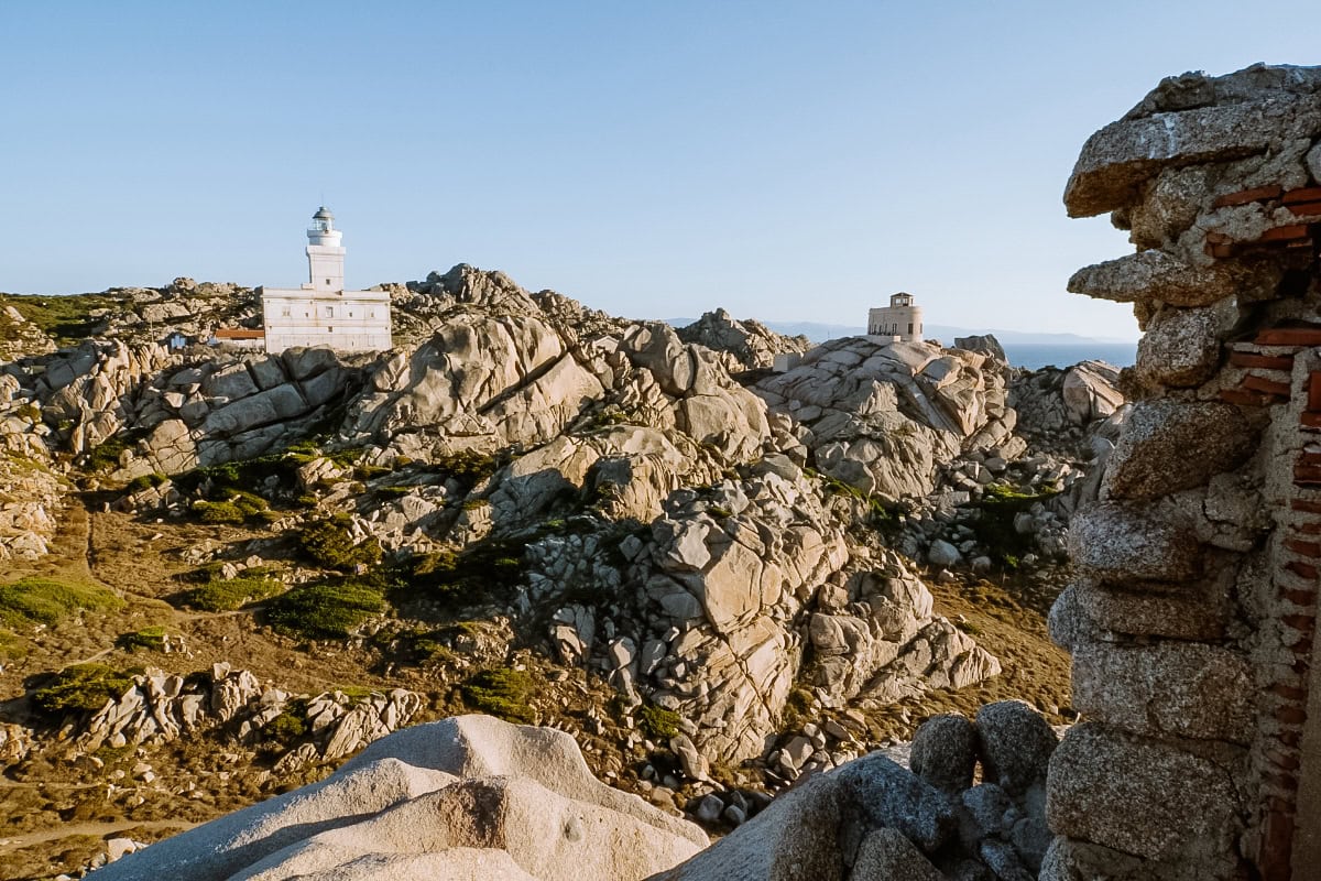 Na konci mysu stojí maják Faro di Capo Testa, kde se k večeru scházejí místní i turisté a kochají západem slunce.