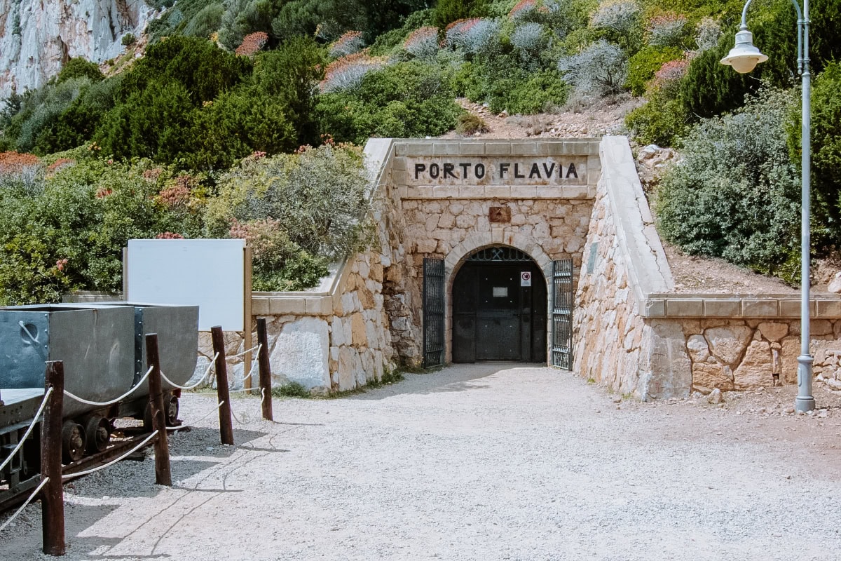 Na první pohled vypadá Porto Flavia jako obyčejný skalní portál nad mořem. Ale ve skutečnosti jde o bývalý nakládací přístav vytesaný do skály, odkud se v první polovině 20. století vyvážela těžba z místních dolů.