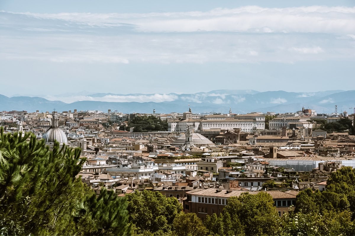 Další krásný výhled na Řím si užijete z pahorku Gianicolo. Sice nepatří mezi sedm slavných římských pahorků, ale rozhodně stojí za to sem vystoupat. Za dobré viditelnosti uvidíte dokonce i panorama Apenin za městem.