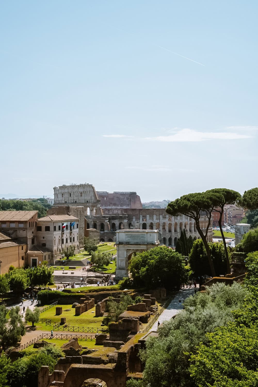 Forum Romanum se nachází mezi Palatinovým pahorkem a Koloseem. Pokud půjdete směrem k Piazza Venezia (kudy jde většina návštěvníků), budete mít na Forum Romanum výhled ze shora. To se ale nevyrovná prohlídce mezi samotnými ruinami, která je součástí vstupenky do Kolosea.