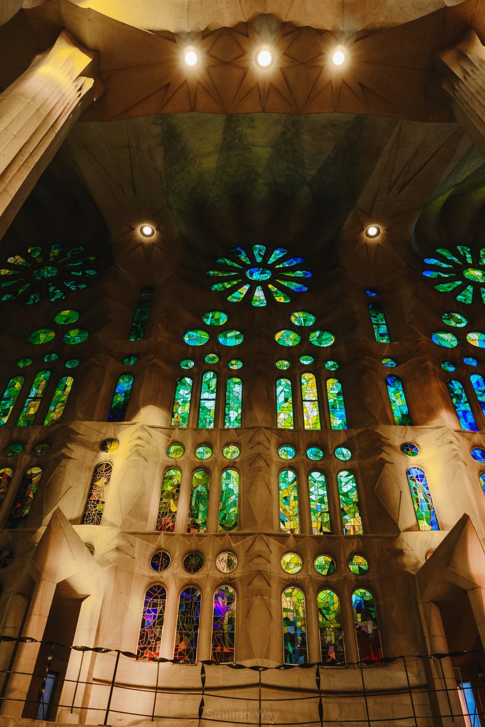 My jsme byli uvnitř baziliky později odpoledne. Fronty na vstup byly, ale postupovaly docela rychle. Světlo uvnitř bylo díky slunci parádní. Pokud vám vyjde slunečné počasí (to v Barceloně nebude takový problém), je jedno, zda s ohledem na světlo dorazíte ráno nebo odpoledne.
