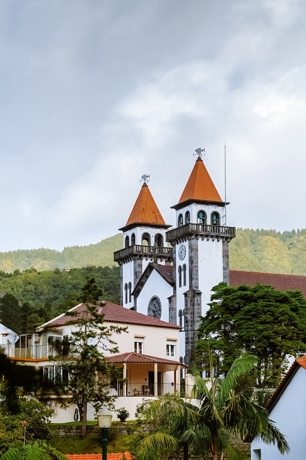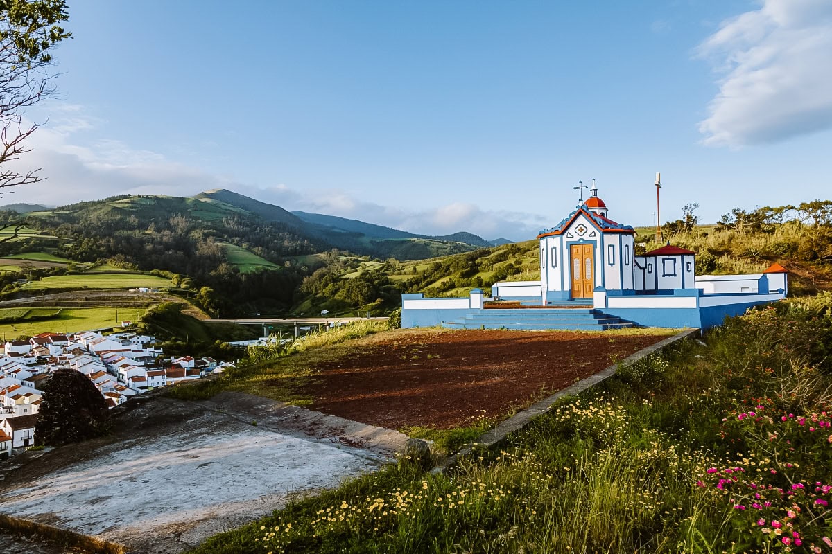 Samotná vesnička Sete Cidades leží přímo na dně kráteru. Je to klidné místo s bílým kostelíkem São Nicolau a alejí vysokých kryptomérií.