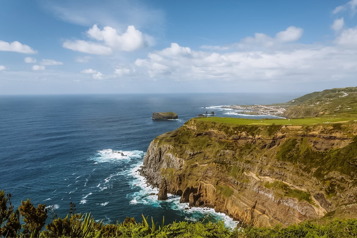 Severní pobřeží je zase neuvěřitelně členité, s výhledy na vysoké útesy i nekonečné zelené pastviny. Po cestě se zastavte na vyhlídkách Miradouro de Santa Iria a Miradouro das Pedras Negras.
