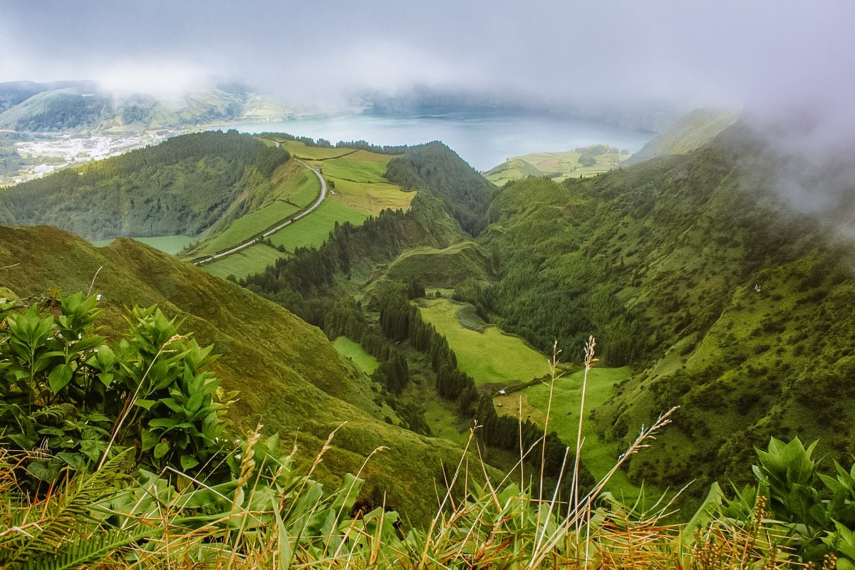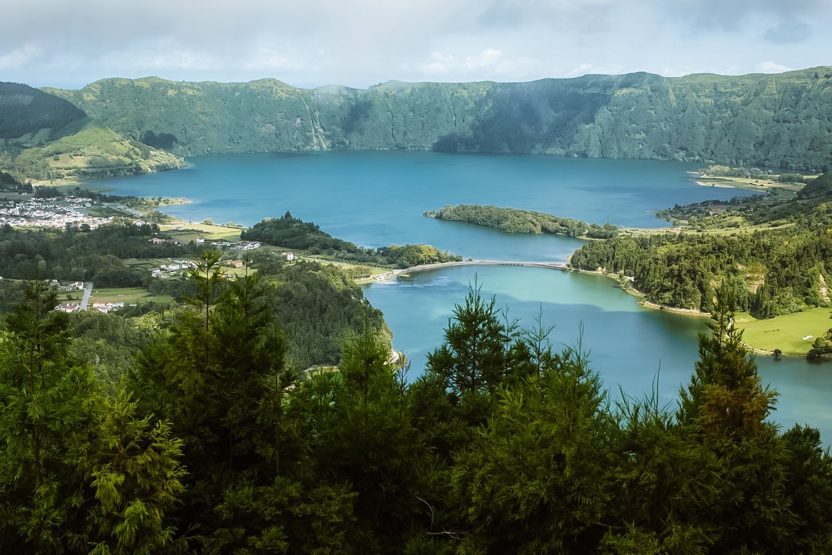 Pokud existuje jedno místo, které definuje São Miguel, je to obří sopečný kráter Sete Cidades. Najdete v něm dvě propojená jezera – jedno výrazně modré a druhé smaragdově zelené. Ve skutečnosti se ale jedná o jedno jezero, které je pouze rozdělené mostem.