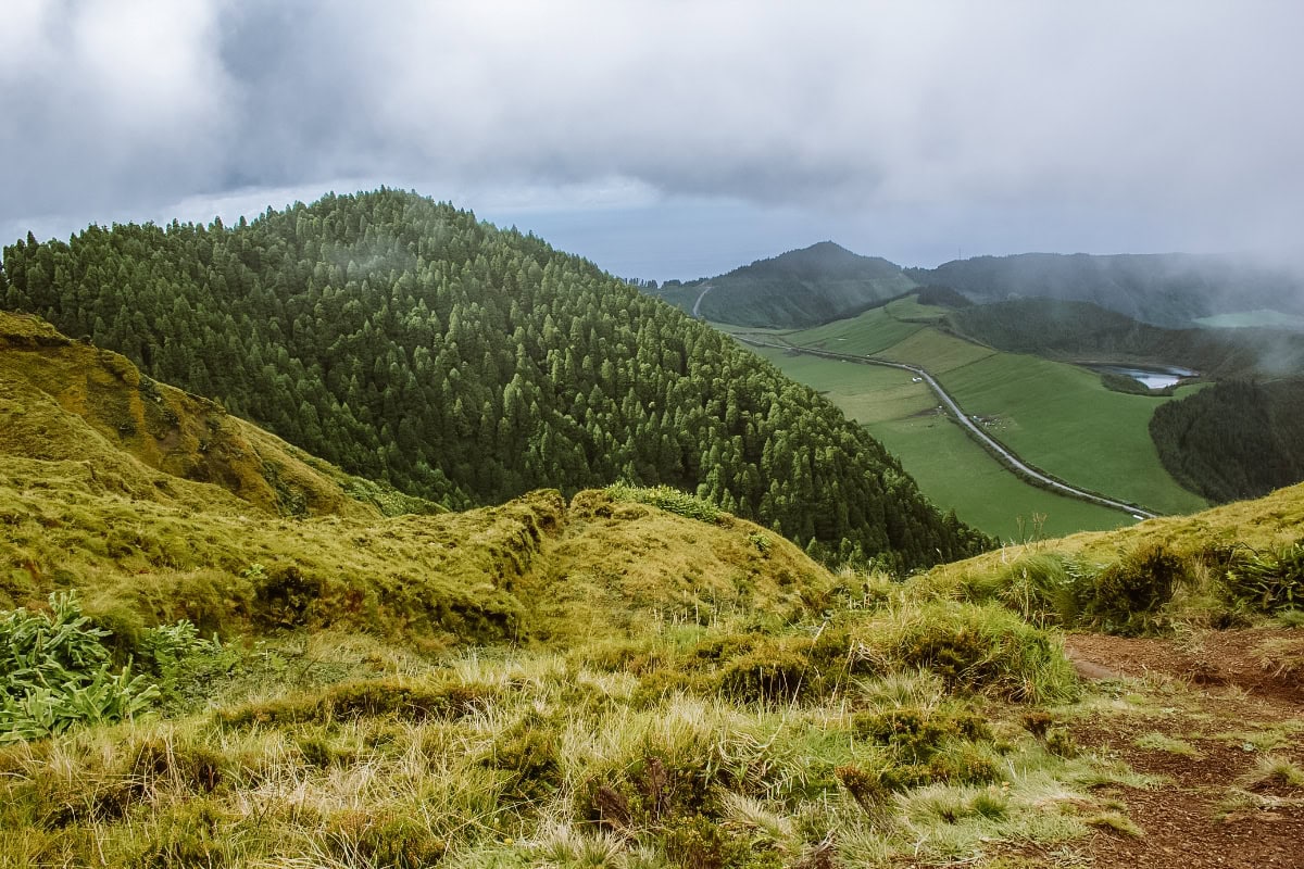Když vyjdete na nejvyšší body trasy, jdete po hřebeni, odkud je výhled až na pobřeží. Zároveň tu krajina vypadá jinak než zbytek São Miguelu. Místo hortenzií a pastvin vás čekají mechem obrostlé kopce, rašeliniště a několik menších sopečných jezírek, jako jsou Lagoa das Éguas nebo Lagoa do Rasa.
