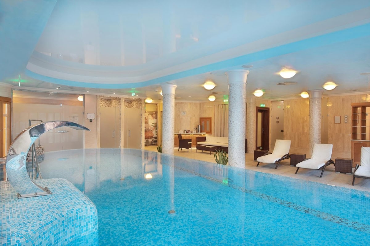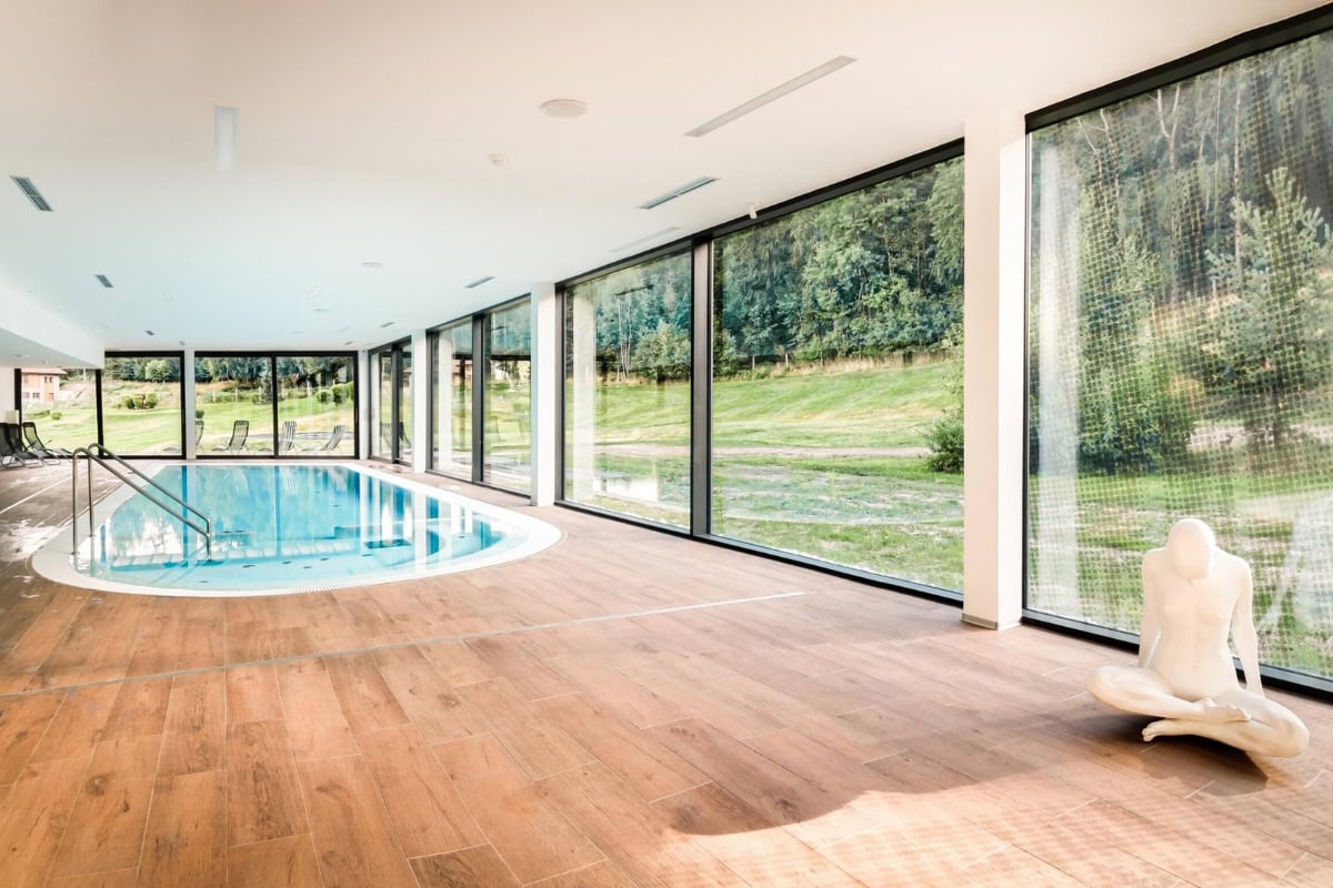 Součástí je moderní bazénový komplex. Hlavní bazén má délku přes 16 metrů a kromě klasického plavání si tu můžete užít chrliče, vzduchové i masážní trysky. Voda je bez vřídelního přídavku a má příjemných 28 °C. K tomu je tu vířivka, sauna a parní kabina.