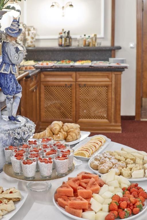 V ceně pobytu je výborná snídaně, součástí hotelu je také restaurace, kde vaří skvěle. V pátek a sobotu tu hraje živá hudba, což přidává na atmosféře.